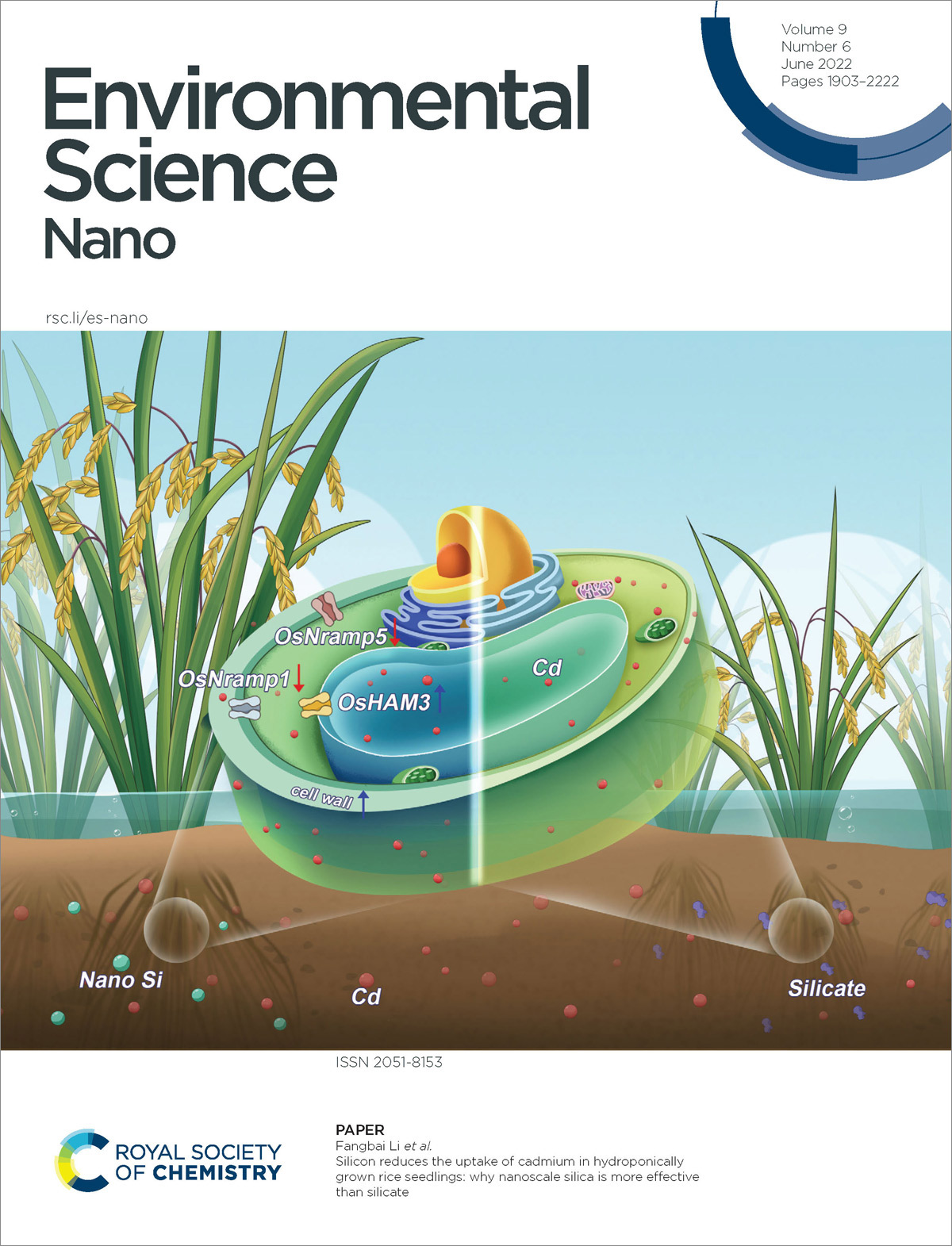 أشارت دراستنا السابقة إلى أن تطبيق السيليكون يمكن أن يقلل من امتصاص وتراكم الكادميوم في الأرز. ومع ذلك، لم يتم التحقيق في تأثيرات أشكال السيليكون المختلفة على امتصاص وتراكم الكادميوم، وآلياتها الأساسية ليست واضحة تماماً. هنا، قمنا بدراسة التأثيرات المحتملة المختلفة لجسيمات السيليكا النانوية والسيليكات على امتصاص ونقل الكادميوم في شتلات الأرز في نظام الزراعة المائية.
