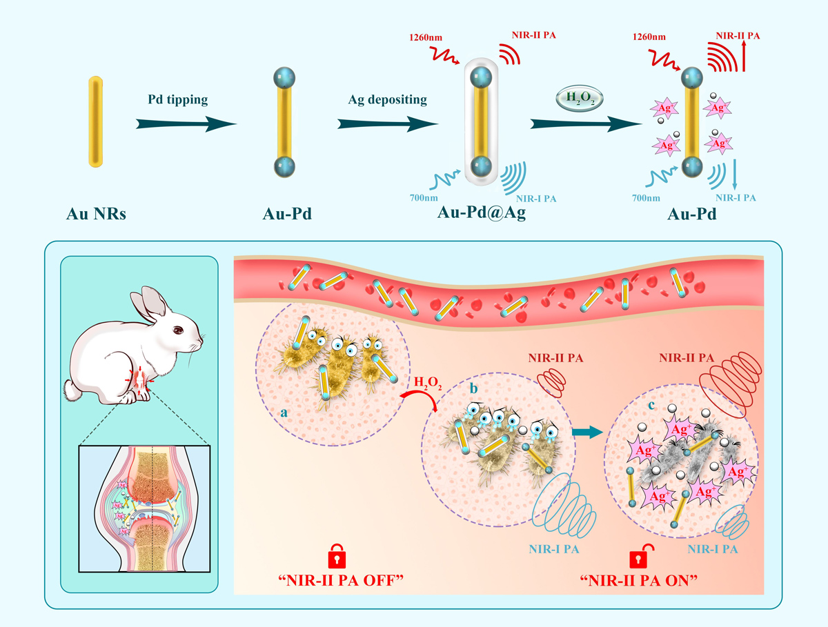 التشخيص الكمي بالتصوير الصوتي الضوئي والعلاج الدقيق للالتهاب داخل الجسم الحي باستخدام جسيم نانوي تشخيصي علاجي قابل للتنشيط
